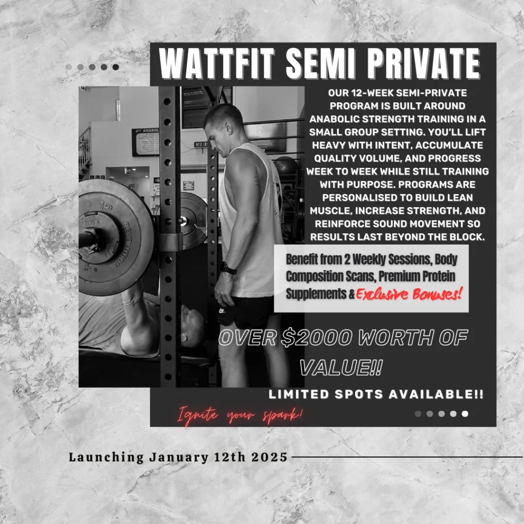Looking for expert coaching, structured programming, and a motivating small-group environment? Our Semi-Private Training programs provide the best of both worlds—personalised attention with the energy and accountability of a small training group.